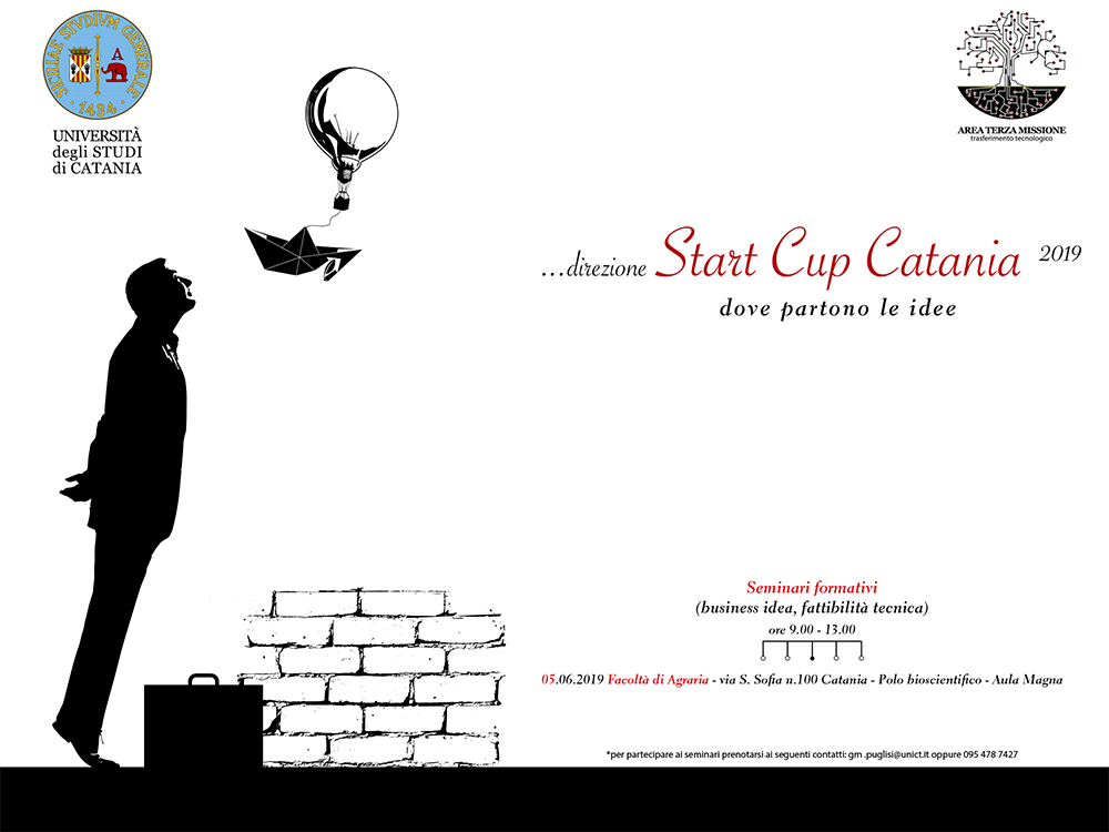 Mercoledì 5 giugno alle 9, nell'aula magna del Polo bioscientifico del Dipartimento di Agricoltura, Alimentazione e Ambiente (Via Santa Sofia,100 - Catania), si svolge un nuovo seminario formativo del ciclo sulla cultura di impresa, organizzato dall’Area della Terza Missione (Ripartizione trasferimento tecnologico) dell'Università di Catania, in vista della Start Cup Catania 2019.