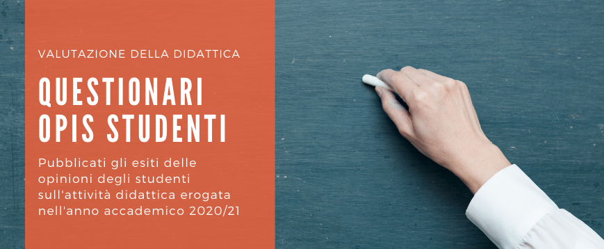 I dati concernenti le opinioni degli studenti per l'a.a. 2020/21 e le relative elaborazioni (schede 1 e 3), sono disponibili nella sezione dedicata del sito d'Ateneo a partire dall’11 ottobre 2021.