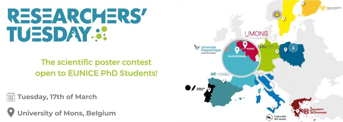 Martedì 17 marzo 2026, presso il Wallonia Conference Center di Mons, in Belgio, si terrà il Researchers’ Tuesday, un concorso annuale di poster scientifici organizzato, a rotazione, dall’Université Polytechnique Hauts-de-France (Francia) e dall’Università di Mons (Belgio).