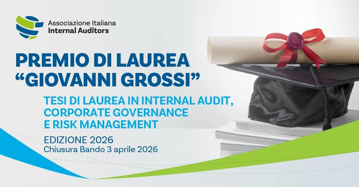 L’AIIA - Associazione Italiana Internal Auditors ha bandito l’edizione 2026 del Premio di laurea “Giovanni Grossi”, iniziativa rivolta a laureati magistrali che abbiano realizzato una tesi sui temi dell’Internal Audit, della Corporate Governance e del Risk Management.